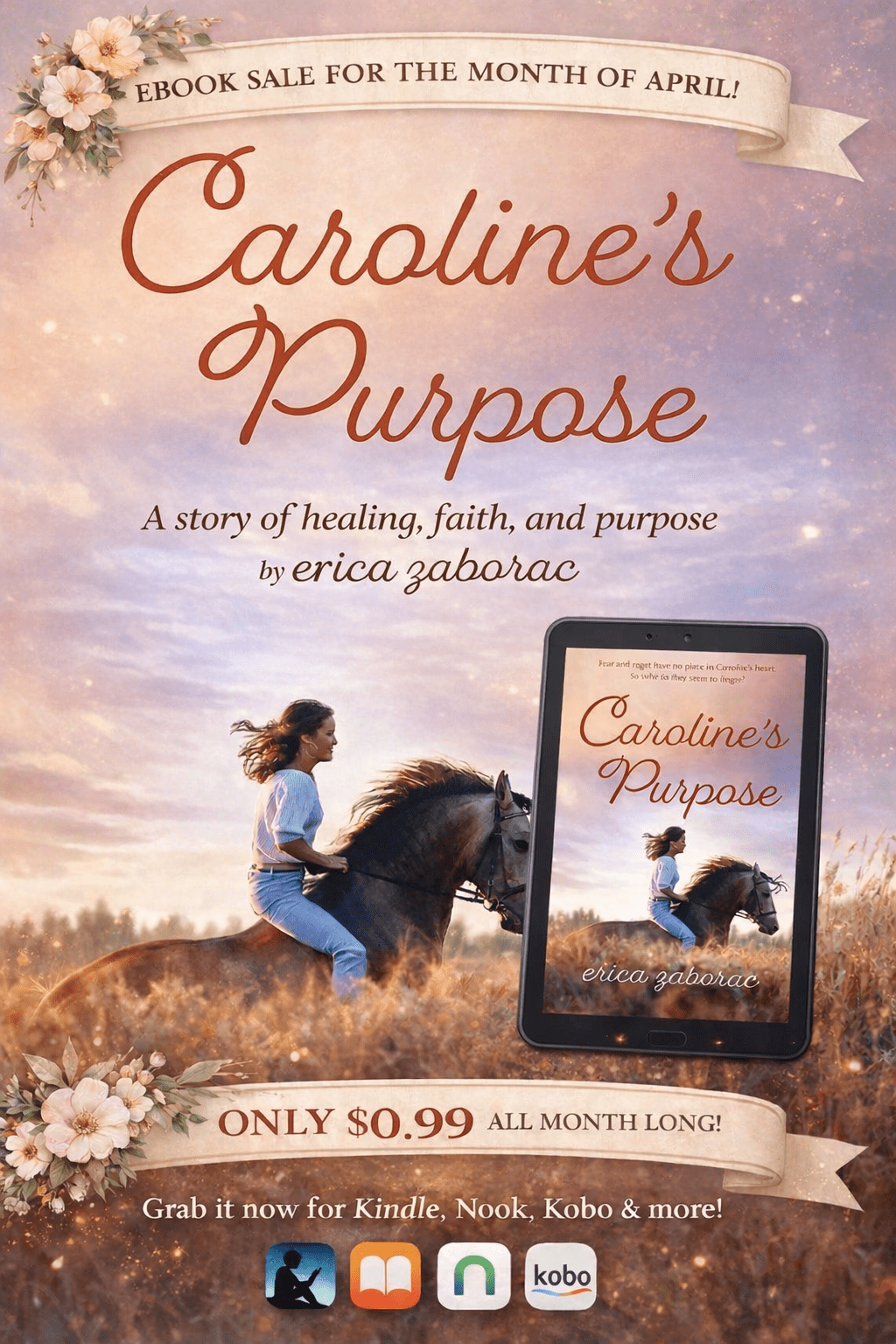 If you’ve been waiting to grab Caroline’s Purpose, now is a great time! For the month of April, you can grab the eBook for just $0.99! Read it now and get ready for the sequel later this year! Get it here.